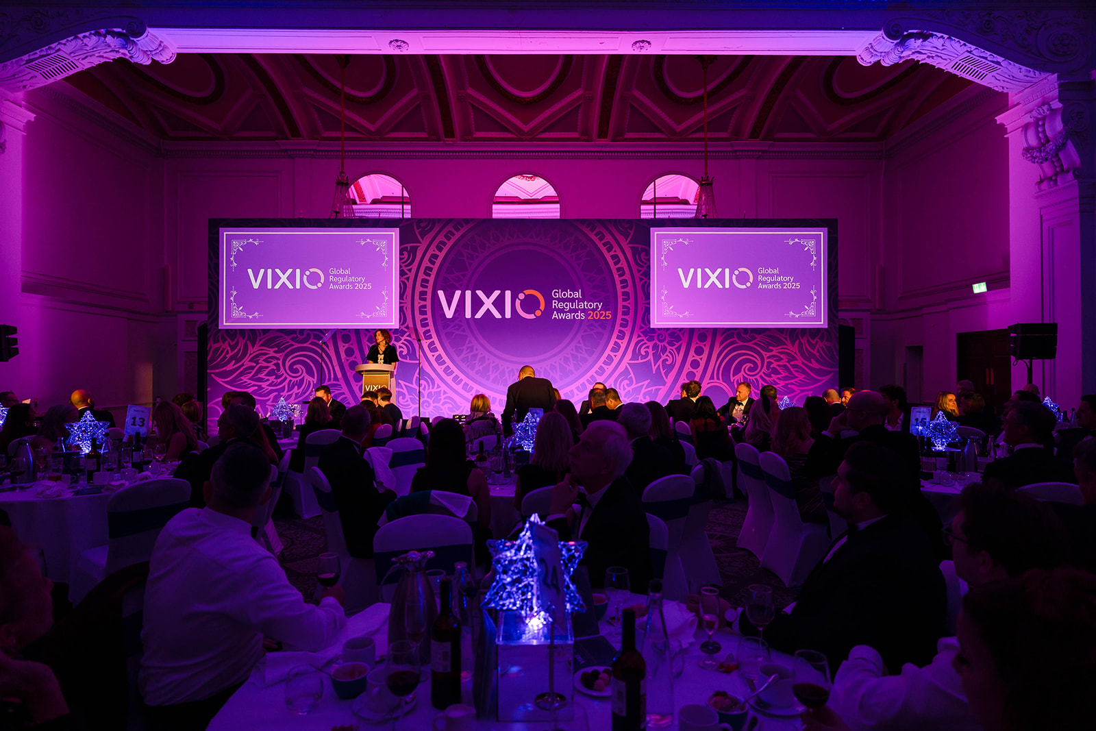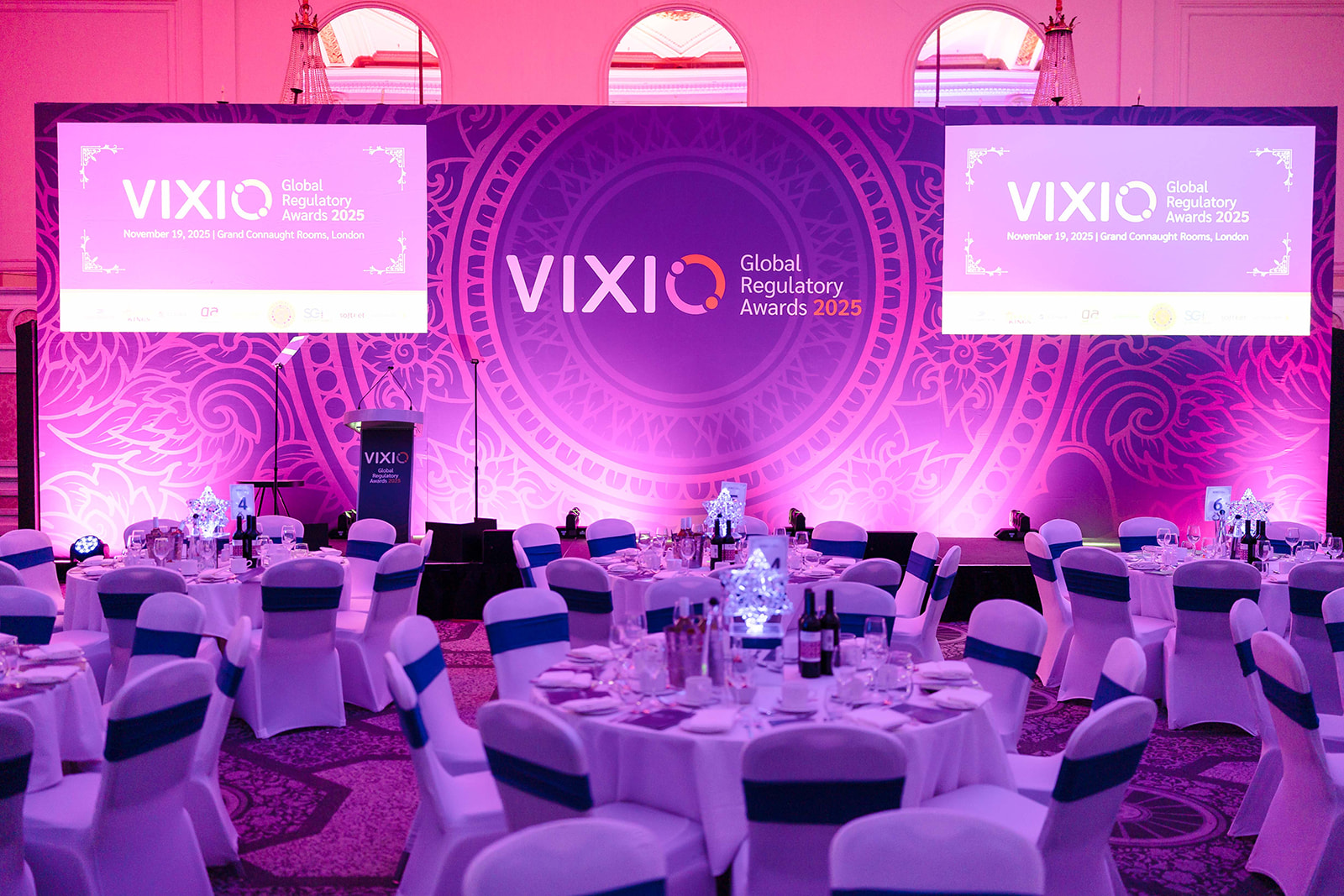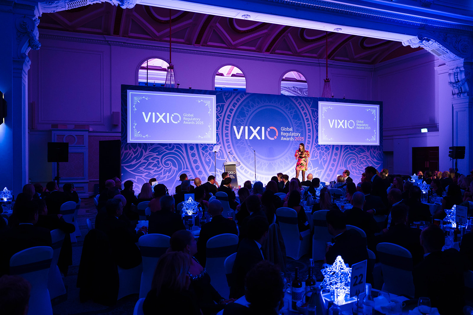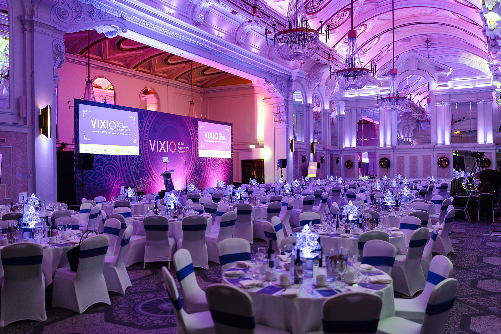 Highlight images from the eighth-annual Global Regulatory Awards hosted by Vixio on November 19 2025, at the De Vere Grand Connaught Rooms in London.