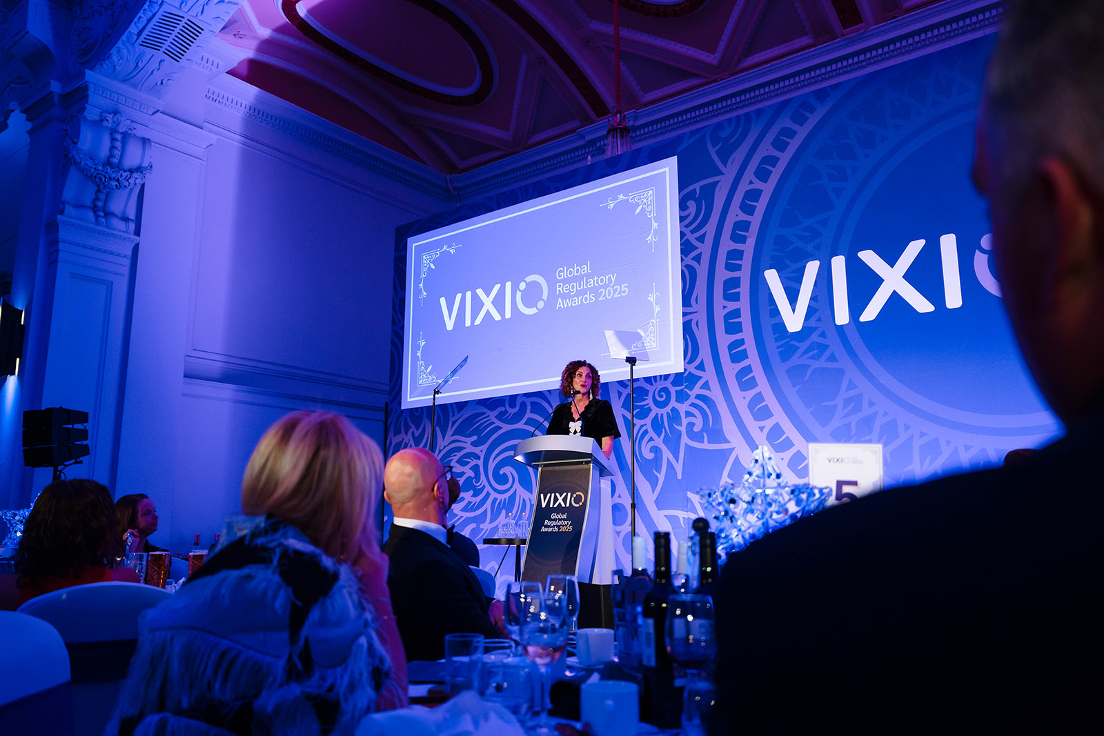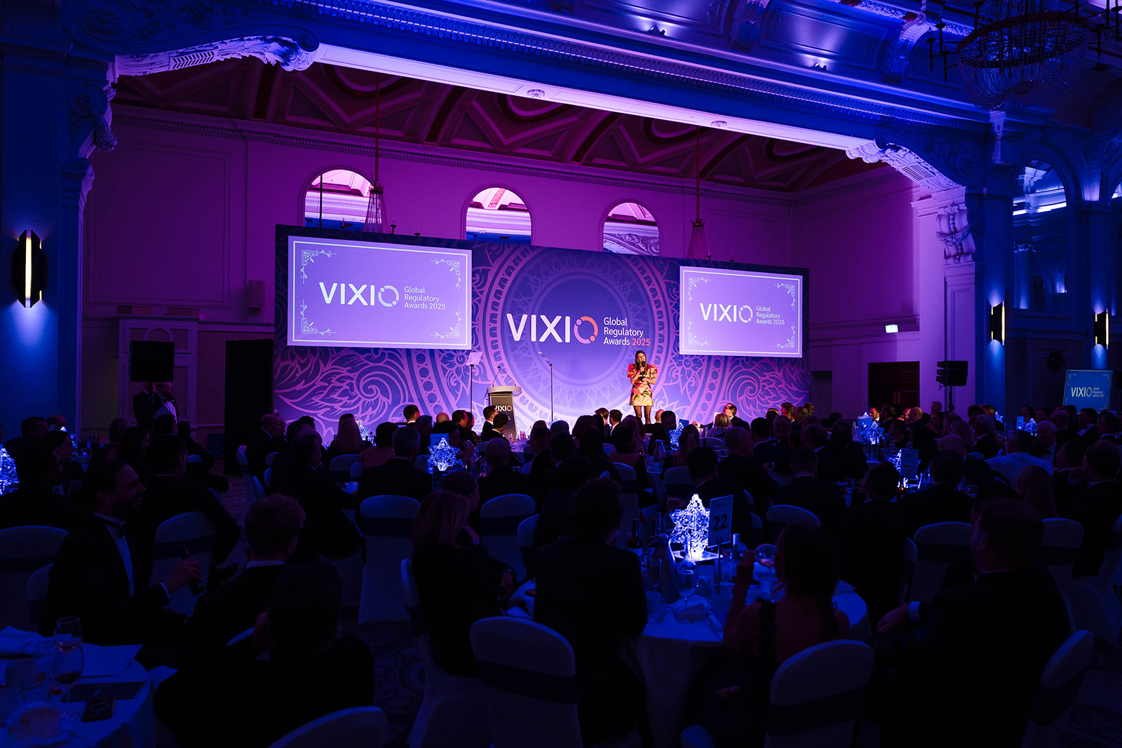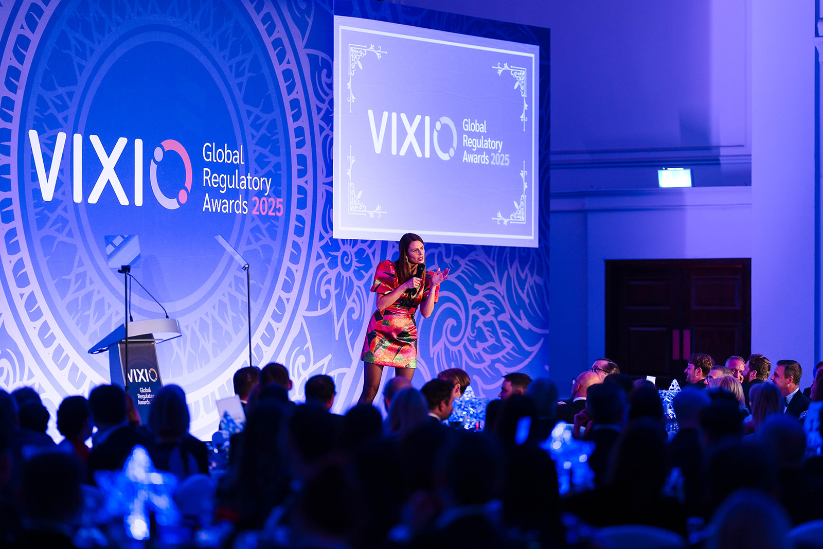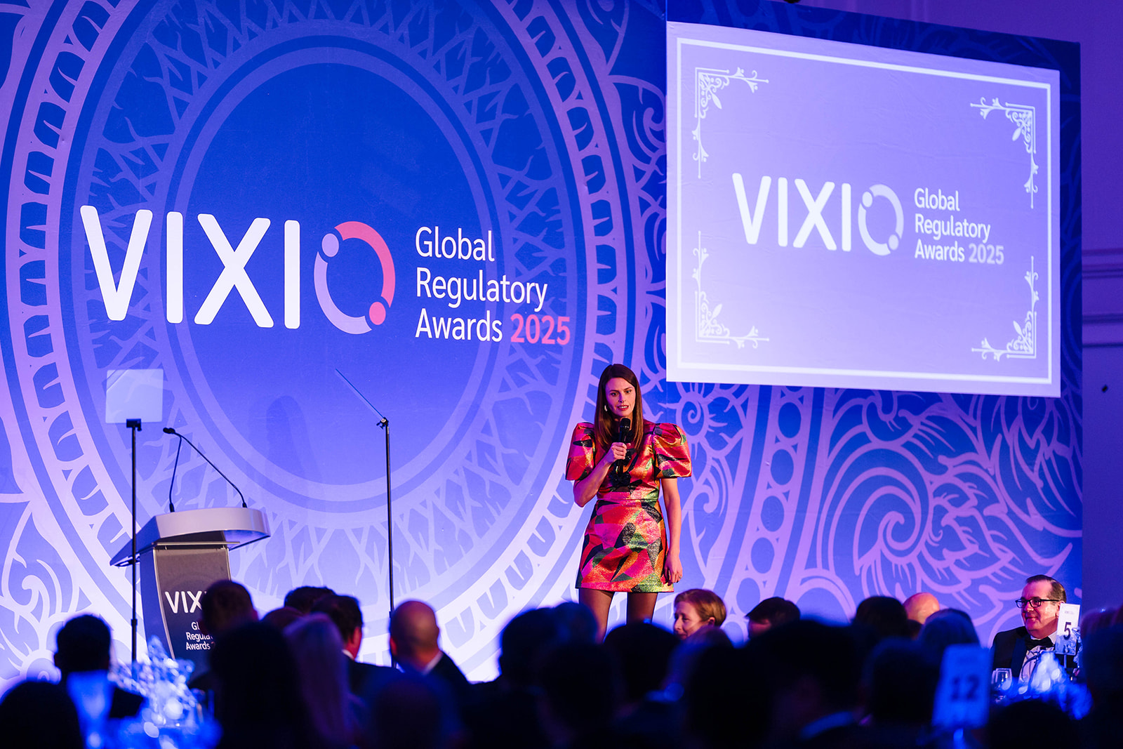 Highlight images from the eighth-annual Global Regulatory Awards hosted by Vixio on November 19 2025, at the De Vere Grand Connaught Rooms in London.