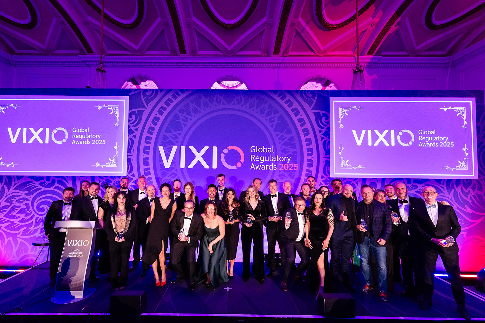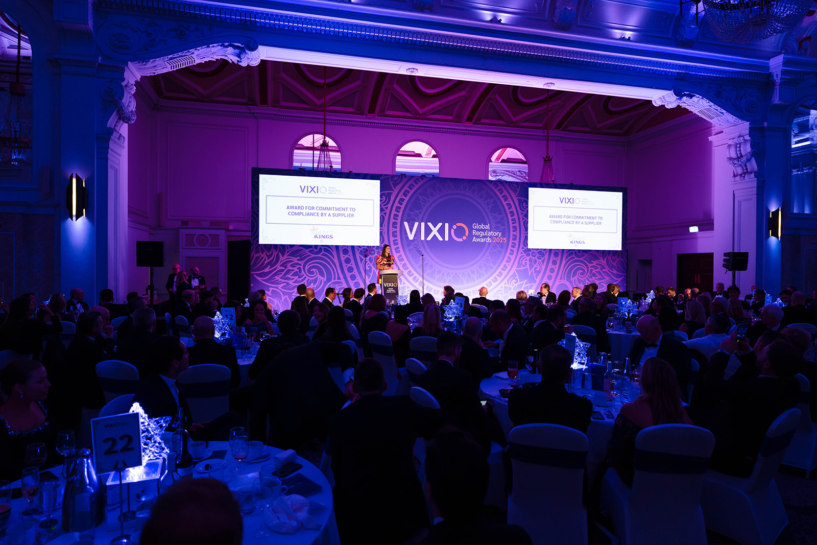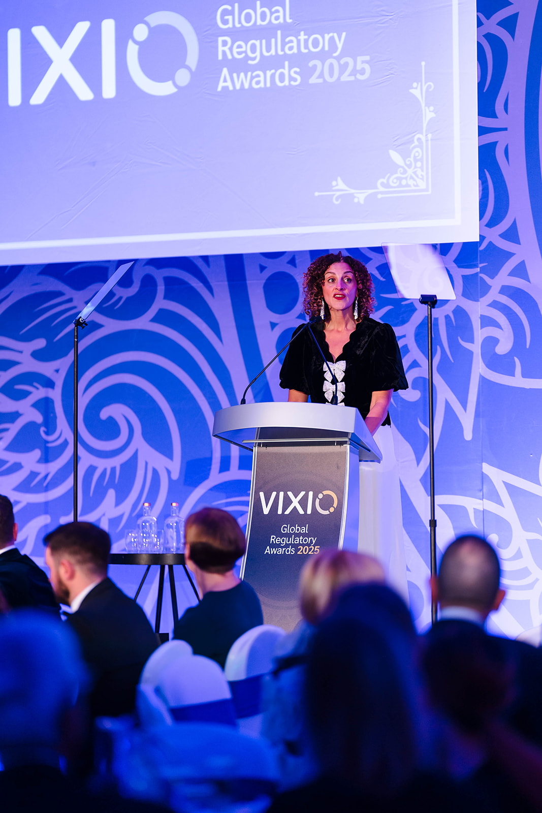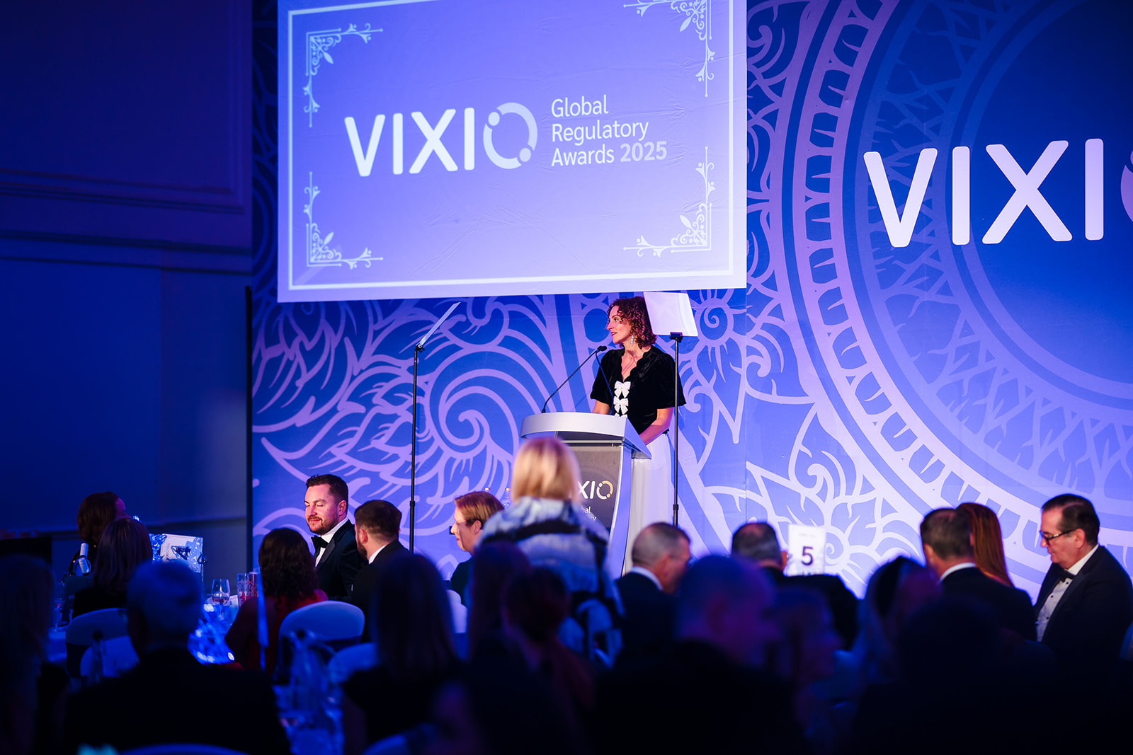 Highlight images from the eighth-annual Global Regulatory Awards hosted by Vixio on November 19 2025, at the De Vere Grand Connaught Rooms in London.