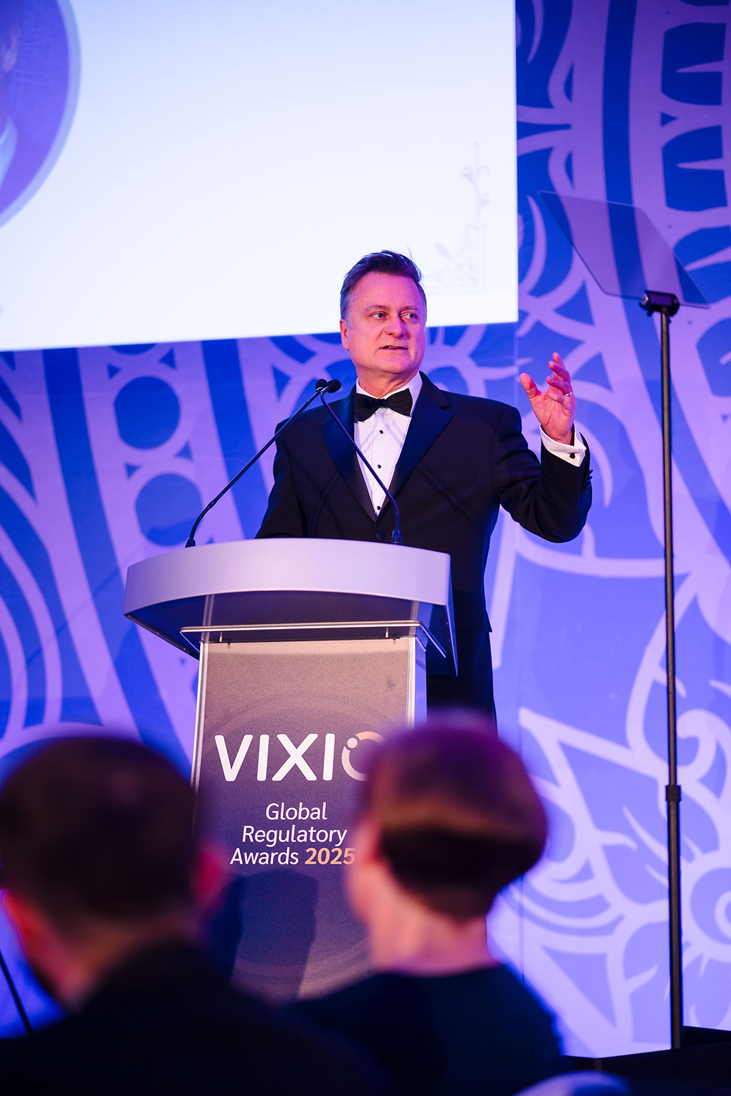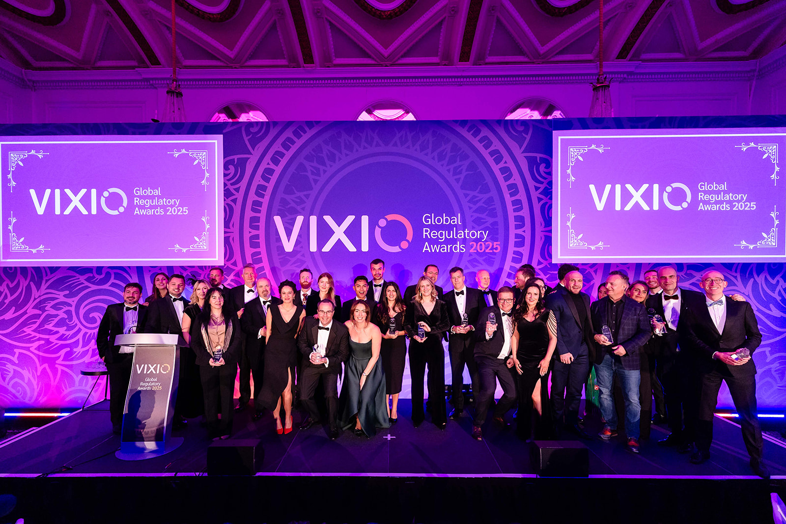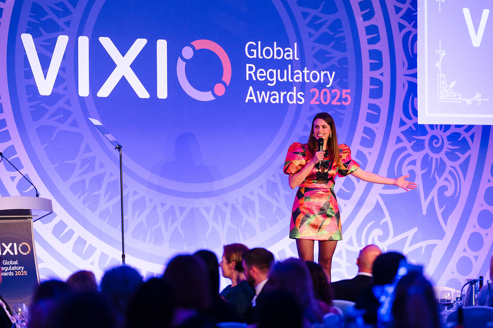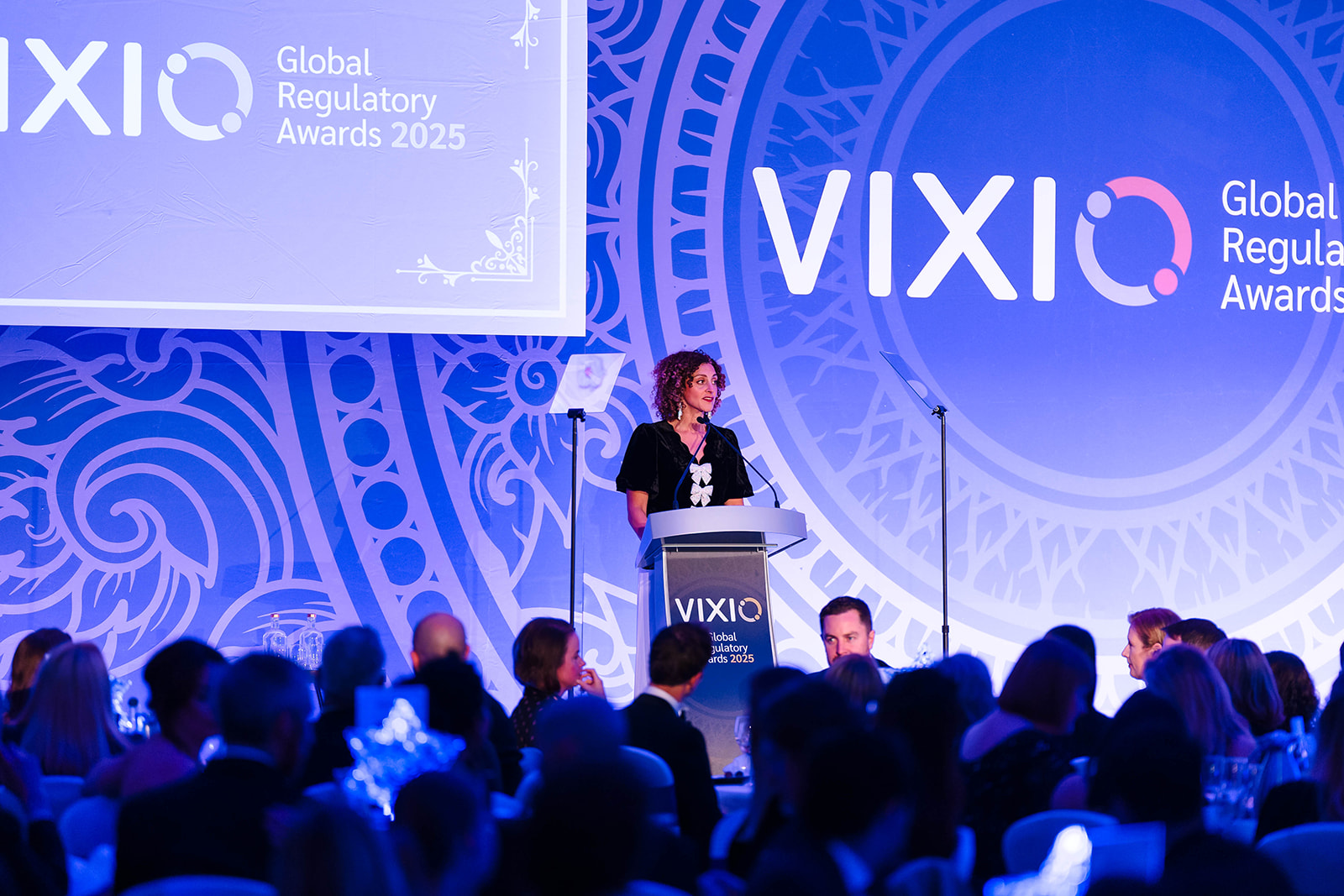 Highlight images from the eighth-annual Global Regulatory Awards hosted by Vixio on November 19 2025, at the De Vere Grand Connaught Rooms in London.